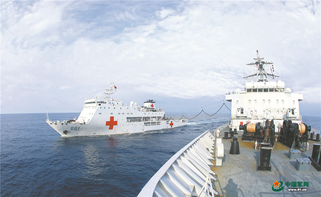 抵達(dá)補(bǔ)給海域后,醫(yī)療船快速占領(lǐng)補(bǔ)給陣位。官兵們在補(bǔ)給艦和醫(yī)療船之間架起承載索,順利完成輸油軟管對接。海面波浪翻卷,艦船上下起伏,官兵克服困難精準(zhǔn)操縱,成功完成補(bǔ)給。
