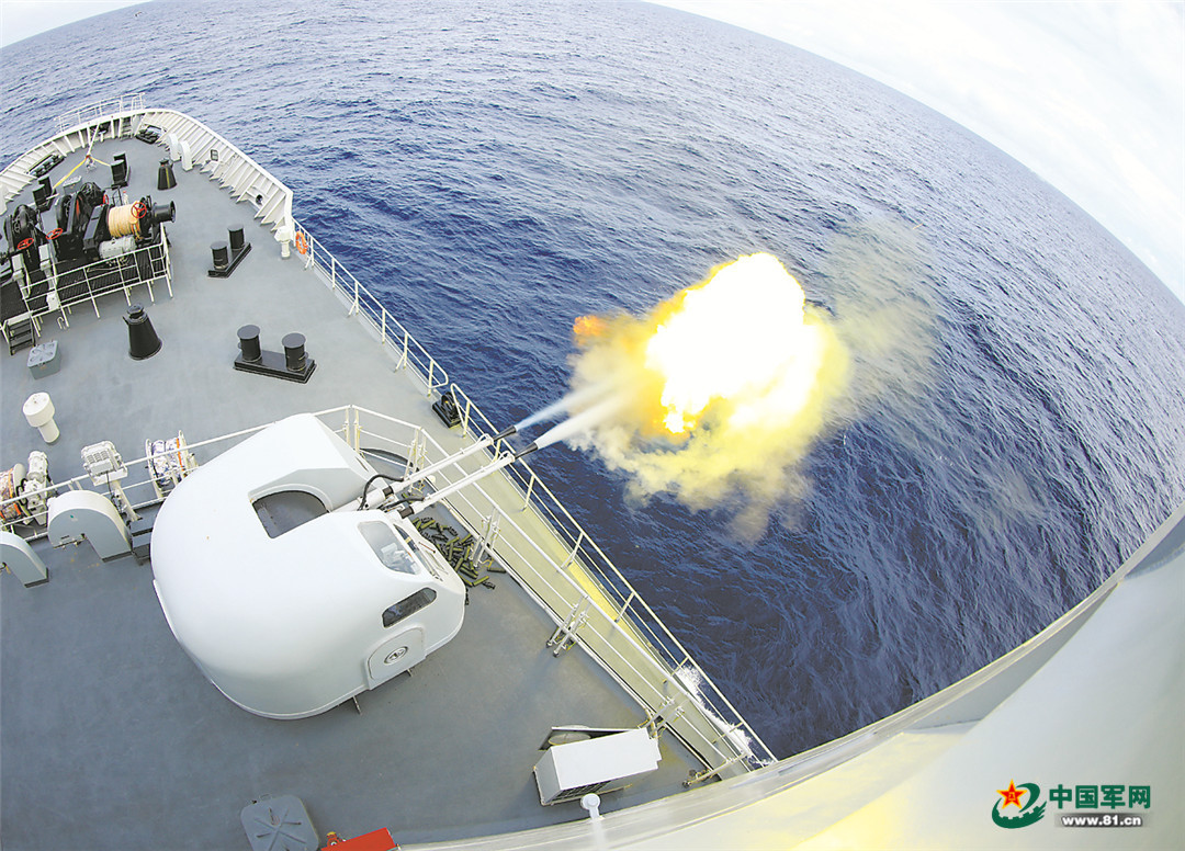 圖④:艦炮對海上目標(biāo)實(shí)施打擊。