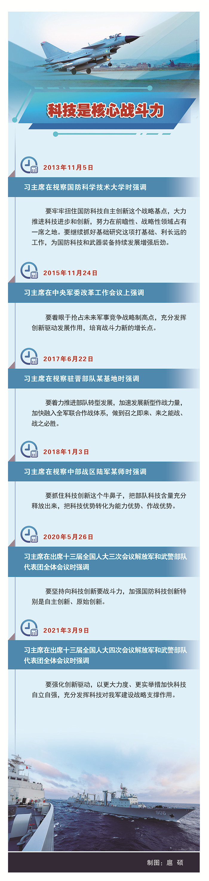 在黨的領(lǐng)導(dǎo)下,軍事科研工作與國(guó)家科技事業(yè)同頻共振,“科技”與“強(qiáng)軍”兩個(gè)詞,關(guān)聯(lián)性日益增強(qiáng),耦合度不斷提升。特別是黨的十八大以來(lái),習(xí)主席站在全局的戰(zhàn)略高度,為人民軍隊(duì)擘畫(huà)科技創(chuàng)新的宏偉藍(lán)圖,強(qiáng)軍偉業(yè)的強(qiáng)勁引擎全速發(fā)動(dòng)。