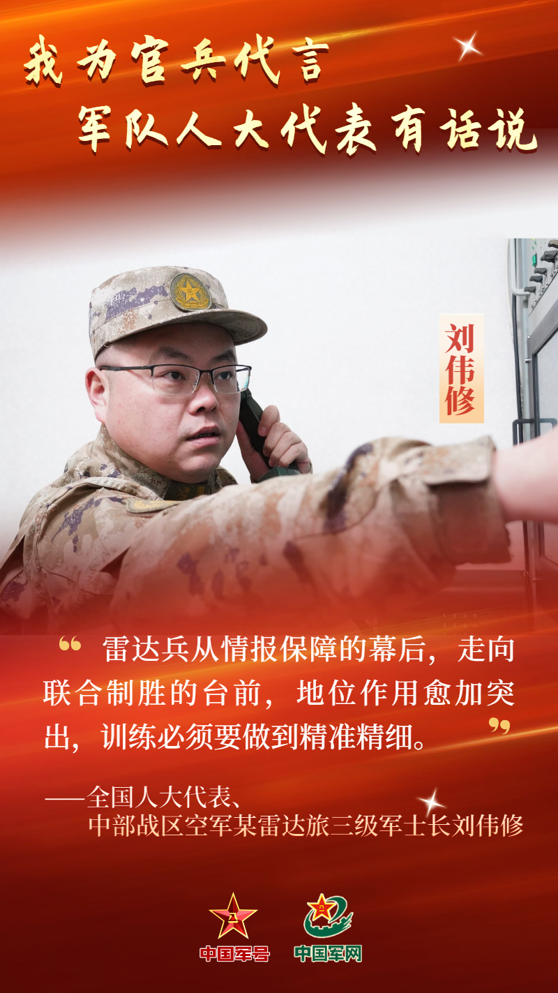 當(dāng)前,部隊(duì)處在加速轉(zhuǎn)型發(fā)展的關(guān)鍵時(shí)期。劉偉修代表深刻感受到,雷達(dá)兵從情報(bào)保障的幕后,走向聯(lián)合制勝的臺(tái)前,地位作用越來越突出,訓(xùn)練必須要做到精準(zhǔn)精細(xì)。這樣才能不斷提高戰(zhàn)斗力,讓官兵的全部心思向打贏聚焦。