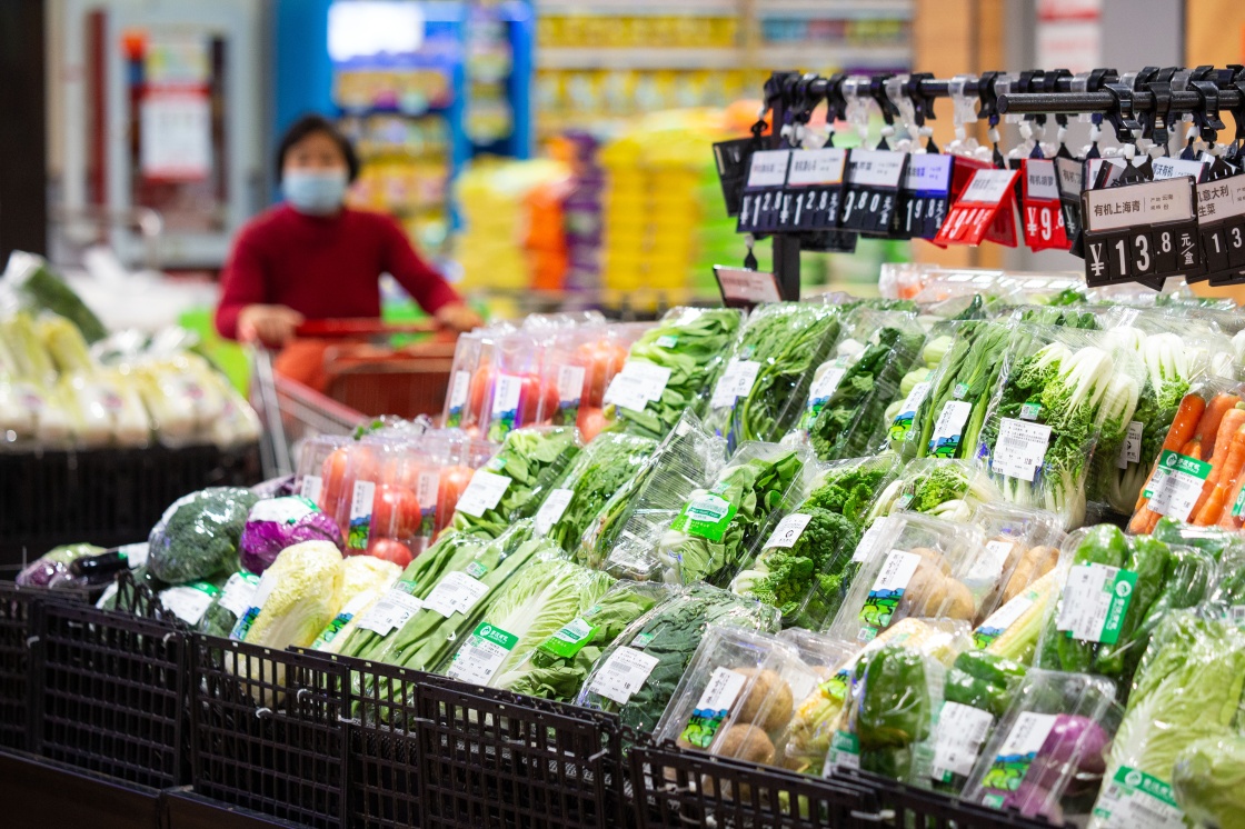 2022年1月12日,顧客在南京一家超市內(nèi)選購蔬菜。新華社發(fā)(蘇陽 攝)