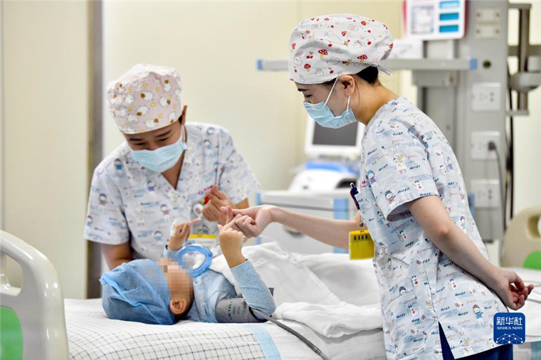 在山東省棗莊市婦幼保健院兒童ICU病房,醫(yī)護(hù)人員為完成靶向治療藥物諾西那生鈉的4歲脊髓性肌萎縮癥患兒加油鼓勁(1月1日攝)。諾西那生鈉注射液是我國首個獲批治療脊髓性肌萎縮癥的進(jìn)口藥物,2019年進(jìn)入中國市場時,每針價格近70萬元。在2021年國家醫(yī)保目錄藥品談判中,以3.3萬元每針的價格進(jìn)入新版醫(yī)保藥品目錄。新華社記者 郭緒雷 攝