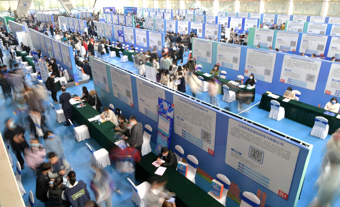 這是在南昌大學(xué)舉行的“百場(chǎng)校招”活動(dòng)現(xiàn)場(chǎng)(2021年10月23日攝)。新華社記者 彭昭之 攝
