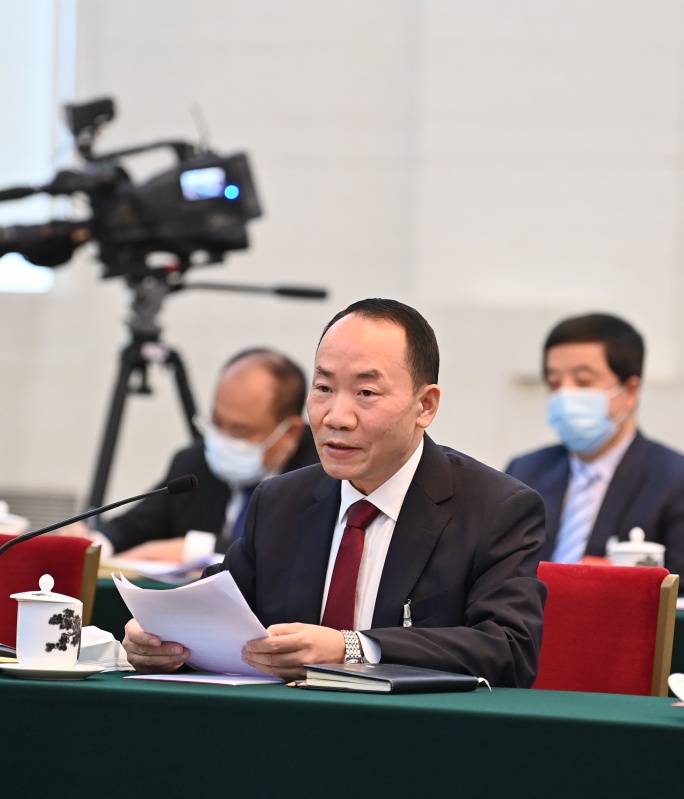 全國(guó)人大代表李永萊圍繞扛牢保供電責(zé)任、為助推鄉(xiāng)村振興作出新貢獻(xiàn)發(fā)言。新華社記者 李響 攝