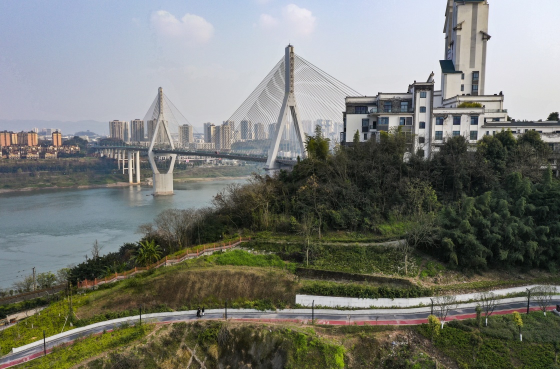 這是位于重慶市大渡口區(qū)的重鋼崖線山城步道附近景色(2月15日攝,無(wú)人機(jī)照片)。新華社記者 王全超 攝