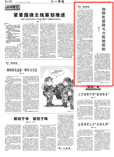 高空偵察、信息支撐、立體投送、精確制導(dǎo)、定點清除……某部在一次實戰(zhàn)化演習(xí)中,各作戰(zhàn)單元堅持有效供給先進戰(zhàn)斗力,大大提升了體系作戰(zhàn)效能。這場演練再次證明,打贏未來一體化聯(lián)合作戰(zhàn),必須加快先進戰(zhàn)斗力有效供給。