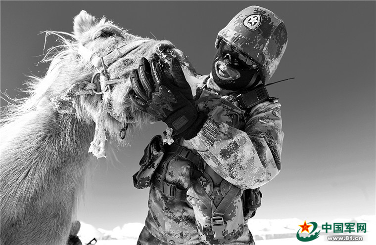駐阿里某連一名戰(zhàn)士和他的“無(wú)言戰(zhàn)友”抵達(dá)點(diǎn)位。
