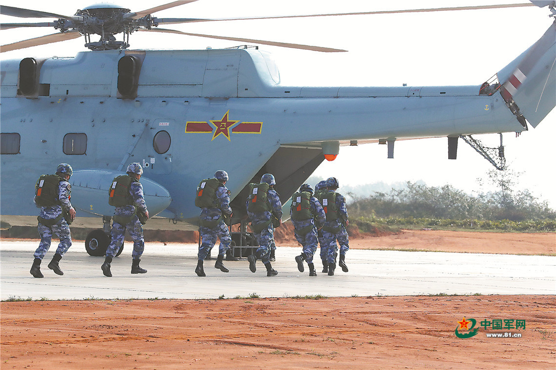 3月初,南國大地春意盎然。在火熱的演訓(xùn)場,海軍陸戰(zhàn)隊(duì)某旅組織特戰(zhàn)隊(duì)員展開一場大規(guī)模直升機(jī)低空跳傘訓(xùn)練。