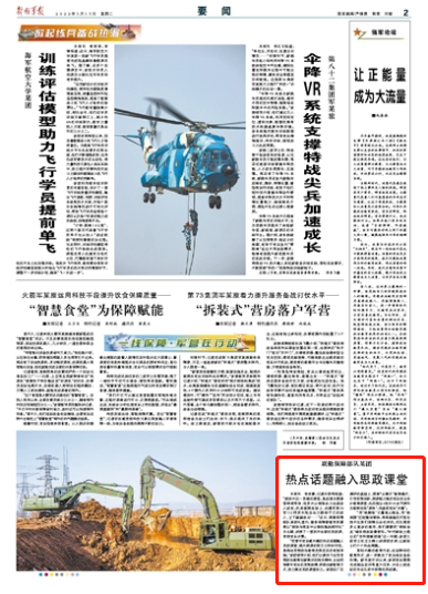 “把青年官兵感興趣的熱點話題融入思政課堂,提升授課的吸引力和針對性,是推動思想政治教育走深走實的有效舉措。”該團領(lǐng)導(dǎo)介紹,他們認(rèn)真學(xué)習(xí)全軍思想政治教育創(chuàng)新集訓(xùn)的相關(guān)精神,主動把準(zhǔn)青年官兵的思想脈搏,積極創(chuàng)新教育方式,努力激發(fā)思政課堂活力。該團在廣泛調(diào)研的基礎(chǔ)上,探索“眾籌式”教育模式,引導(dǎo)思想活躍、授課能力強的官兵自主設(shè)計教育課堂,先后推出4批次40余節(jié)課作為教育自選“菜單”,供基層官兵“點餐”。
