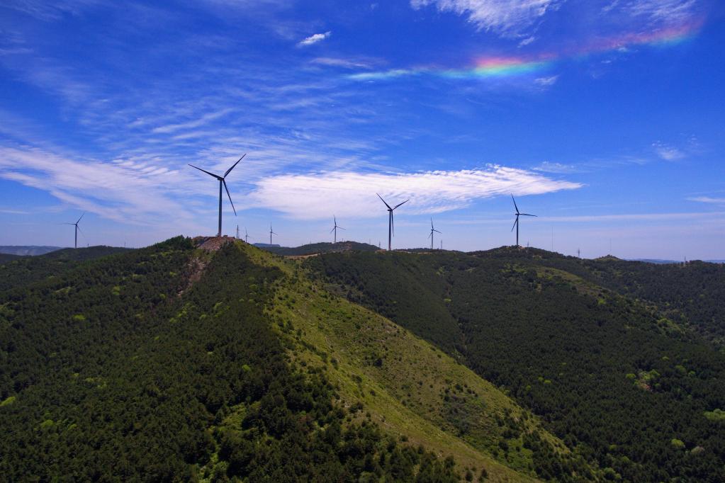 2018年5月23日拍攝的壺關(guān)縣常家池村附近山上的風(fēng)力發(fā)電機(jī)。新華社記者曹陽(yáng) 攝