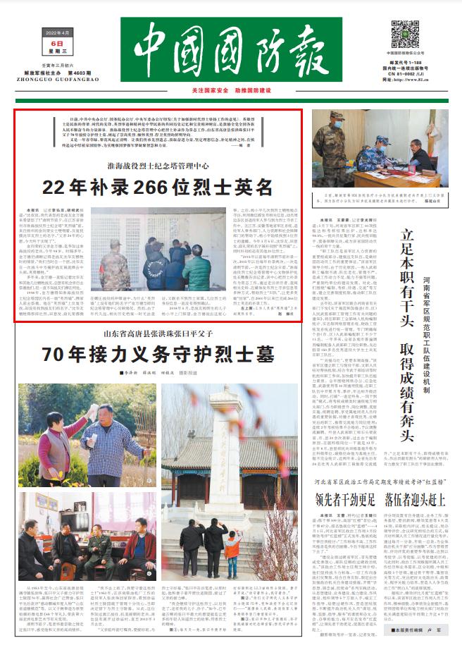 “2015年以前每年清明節(jié)前補(bǔ)錄一次,2015年以后每年補(bǔ)錄兩次,一次是清明節(jié)前,一次是烈士紀(jì)念日前。”淮海戰(zhàn)役烈士紀(jì)念塔管理中心文物保護(hù)處處長(zhǎng)魏薇告訴記者,該中心把烈士補(bǔ)錄作為常態(tài)工作,通過走訪親歷者、查閱相關(guān)史料、在媒體發(fā)布烈士尋親信息等多種方式,幫助烈士“歸隊(duì)”,讓更多英雄“回家”,自2001年以來已完成266位烈士英名的補(bǔ)錄工作。