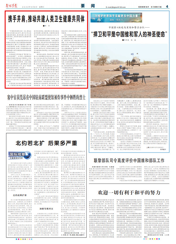 “中國愿同國際社會一道,密切公共衛(wèi)生領域交流合作,攜手應對全球性威脅和挑戰(zhàn),推動共建人類衛(wèi)生健康共同體,為維護各國人民健康作出更大貢獻。”