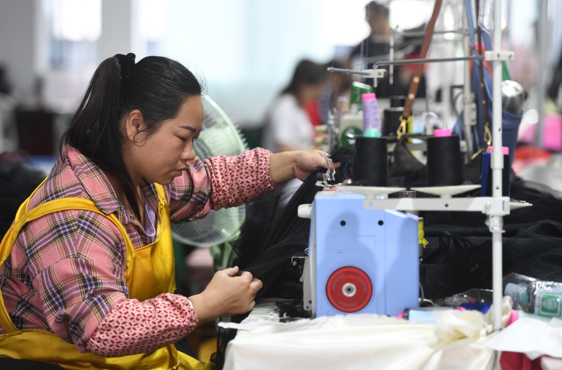 在廣西鳳山縣雙創(chuàng)產(chǎn)業(yè)園,企業(yè)員工在生產(chǎn)作業(yè)中(5月7日攝)。新華社記者 陸波岸 攝