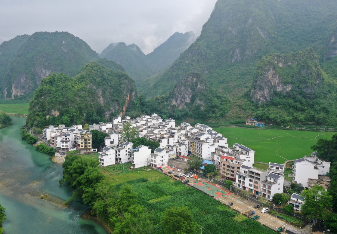 這是廣西巴馬瑤族自治縣鄉(xiāng)村風(fēng)貌(5月8日攝,無人機(jī)照片)。新華社記者 陸波岸 攝
