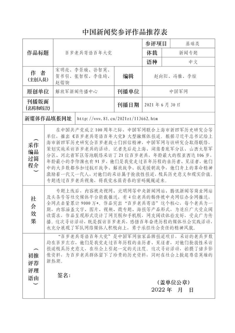 百歲老兵寄語(yǔ)百年大黨