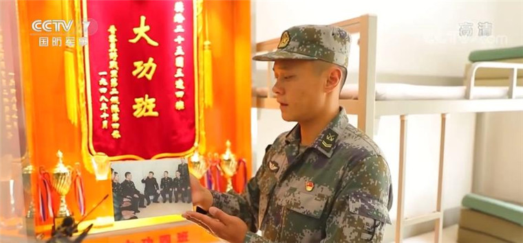 第83集團軍某旅“大功三連”班長 趙闖:這張照片是主席當時來到我們排宿舍,和我們大家一起合影的一張照片。我們排無論走到哪里都會帶著它。我認為這不僅是一種榮譽,更是對我們能夠更好投入練兵備戰(zhàn)的一種激勵。