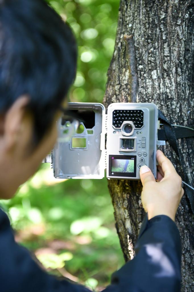 馮利民在東北虎豹國家公園內(nèi)的森林里查看智能紅外相機(jī)(2020年7月21日攝)。新華社記者顏麟蘊(yùn)攝