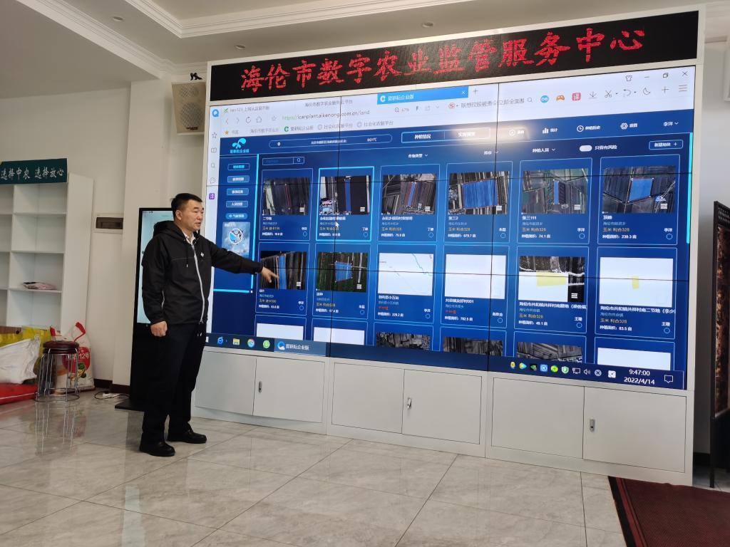 在綏化,海倫市的農(nóng)時(shí)土地托管有限公司負(fù)責(zé)人劉中華正在數(shù)字農(nóng)業(yè)監(jiān)管服務(wù)中心的大屏幕前仔細(xì)查看屏幕上的信息。他指著屏幕說(shuō):“這就是公司托管的各地塊土壤數(shù)據(jù),我們得根據(jù)這些數(shù)據(jù)來(lái)安排下一步農(nóng)事。”