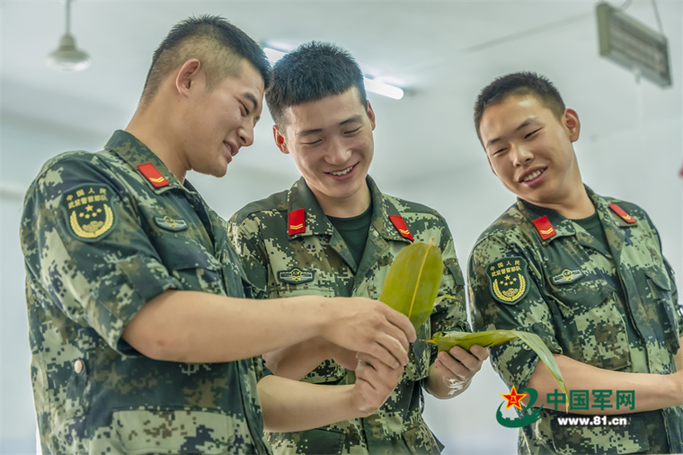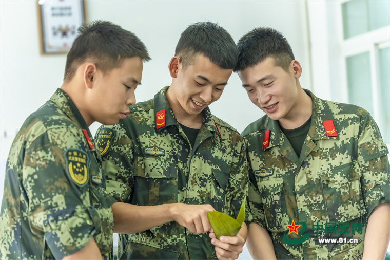 班長(zhǎng)向戰(zhàn)士們傳授包粽子技巧。王良 攝