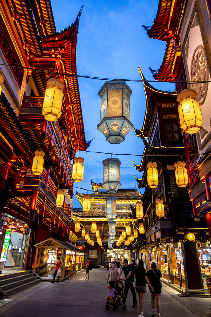 6月4日,豫園商場吸引游客觀光游覽。據(jù)悉,豫園商城嚴格實行預約制入園,園內(nèi)限流人數(shù)瞬時不超過5000人次。(光明圖片/視覺中國)