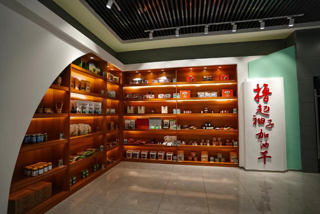 隘口鄉(xiāng)村扶貧產(chǎn)業(yè)園內(nèi)展示的特色農(nóng)產(chǎn)品。新華社記者朱高祥攝