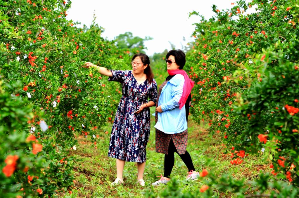 2021年6月,淅川農(nóng)民在南水北調(diào)中線工程渠首附近的石榴園里。(淅川縣委宣傳部供圖)