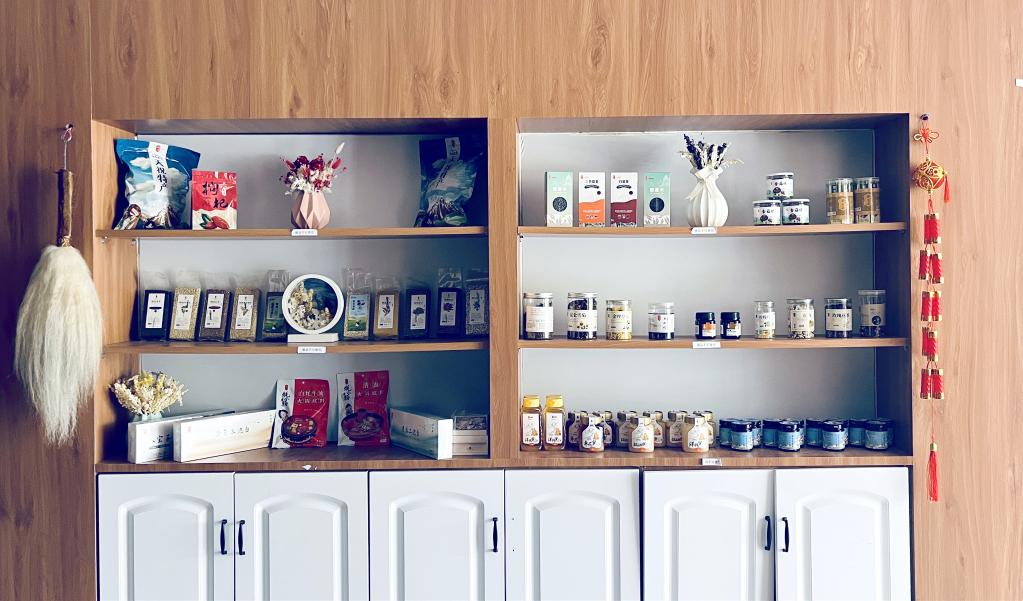公司電商銷售展廳內(nèi),陳列著各式各樣的特色農(nóng)產(chǎn)品。受訪者供圖