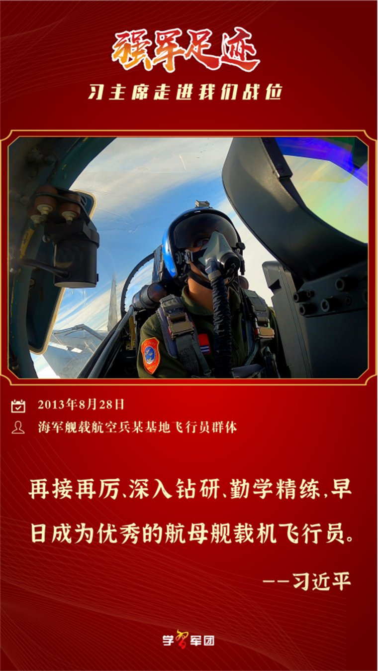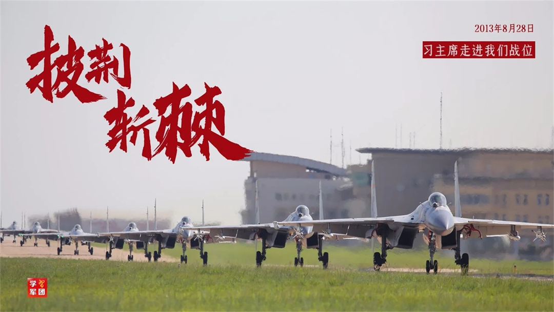 海軍艦載航空兵某部擔(dān)負(fù)著我軍航母艦載機(jī)戰(zhàn)斗力生成任務(wù),鍛造著航母編隊(duì)作戰(zhàn)體系的“尖刀”。2013年8月28日,習(xí)主席冒著風(fēng)雨視察該部隊(duì),觀(guān)看艦載機(jī)滑躍起飛、阻攔著陸訓(xùn)練,對(duì)首批艦載機(jī)飛行員給予高度贊賞和殷切勉勵(lì)。