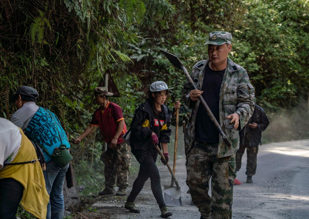 在云南貢山縣獨(dú)龍江鄉(xiāng)巴坡村,王世榮(右一)帶領(lǐng)鄉(xiāng)親們一起勞動(dòng)(資料照片,2019年4月25日攝)。新華社記者江文耀攝