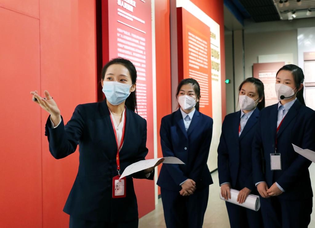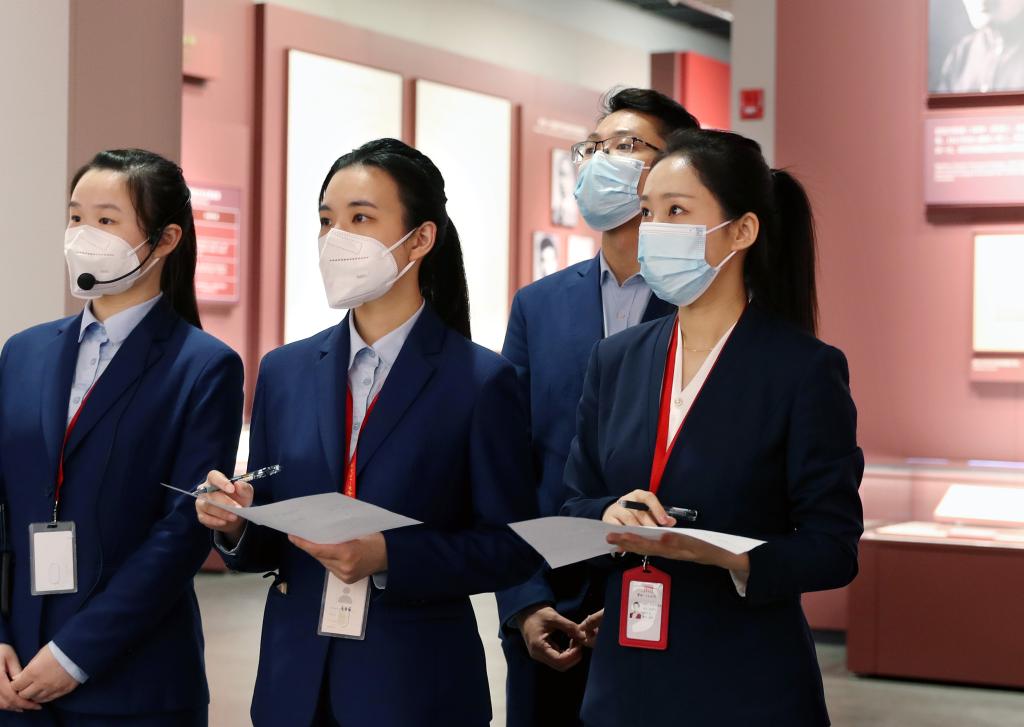 如今,講述黨的歷史,已走向更廣闊的舞臺(tái)。“上午在館里帶隊(duì)參觀,下午隨‘百物進(jìn)百校,百講證百年’活動(dòng)走進(jìn)大中小學(xué),晚上到紅色地標(biāo)上演沉浸式情景黨課”,這經(jīng)常是張欣怡和同事們忙碌而充實(shí)的一天。紀(jì)念館今年年初推出的“偉大精神鑄就偉大時(shí)代——中國(guó)共產(chǎn)黨偉大建黨精神專(zhuān)題展”已開(kāi)啟全國(guó)巡展,張欣怡全程參與布展、撰寫(xiě)講解詞、講解等工作,經(jīng)歷著新一輪的鍛煉和成長(zhǎng)。