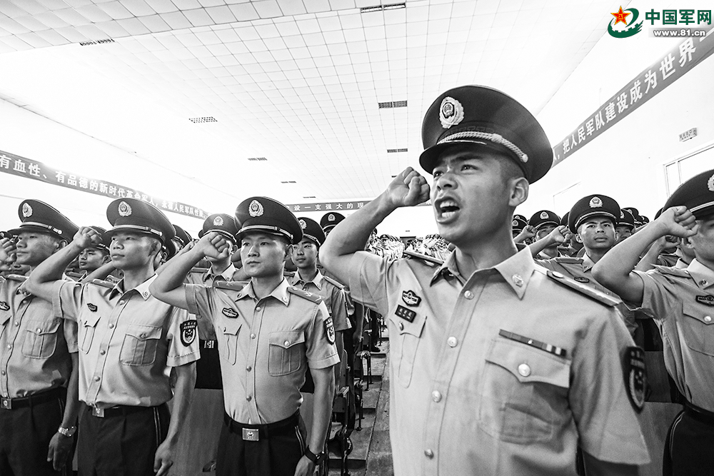 6月28日,武警天津總隊(duì)新兵團(tuán)舉行新兵授銜儀式。張鵬 攝