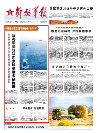 從水際灘頭到遠海大洋,從平面登陸到立體運用,從兩棲攻堅到跨域合成