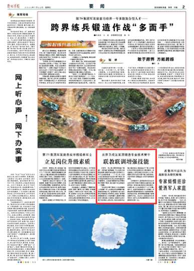解放軍報(bào)訊 朱太海、樊明明報(bào)道:“搭建‘一網(wǎng)四鏈’指揮鏈路,可以實(shí)現(xiàn)立體聯(lián)動(dòng)指揮,確保作戰(zhàn)過(guò)程中各項(xiàng)指令上傳下達(dá)高效暢通……”7月上旬,北京衛(wèi)戍區(qū)某團(tuán)組織專業(yè)技術(shù)骨干集訓(xùn),來(lái)自軍地科研院所的多名專家受邀進(jìn)行專題輔導(dǎo)。這是該團(tuán)瞄準(zhǔn)作戰(zhàn)所需定期開(kāi)展骨干集訓(xùn),強(qiáng)化提升專業(yè)技能的一個(gè)情景。