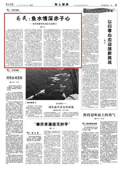 軍愛(ài)民,民擁軍,軍民魚(yú)水一家親。我軍是黨締造和絕對(duì)領(lǐng)導(dǎo)下的人民軍隊(duì),自成立之日起,就把人民寫(xiě)在自己的旗幟上。全心全意為人民服務(wù)是我們黨的唯一宗旨,也是我軍的唯一宗旨。在我軍95年的光輝歷程中,“人民”二字,深深根植于人民子弟兵的靈魂和血脈,是人民軍隊(duì)的力量之源、勝利之基。