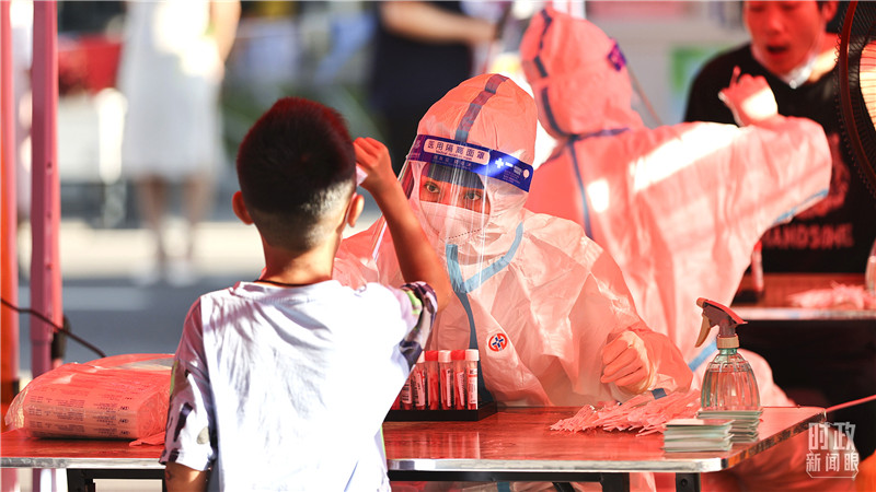 △2022年7月,江蘇連云港,市民在社區(qū)做核酸檢測。(圖/視覺中國)