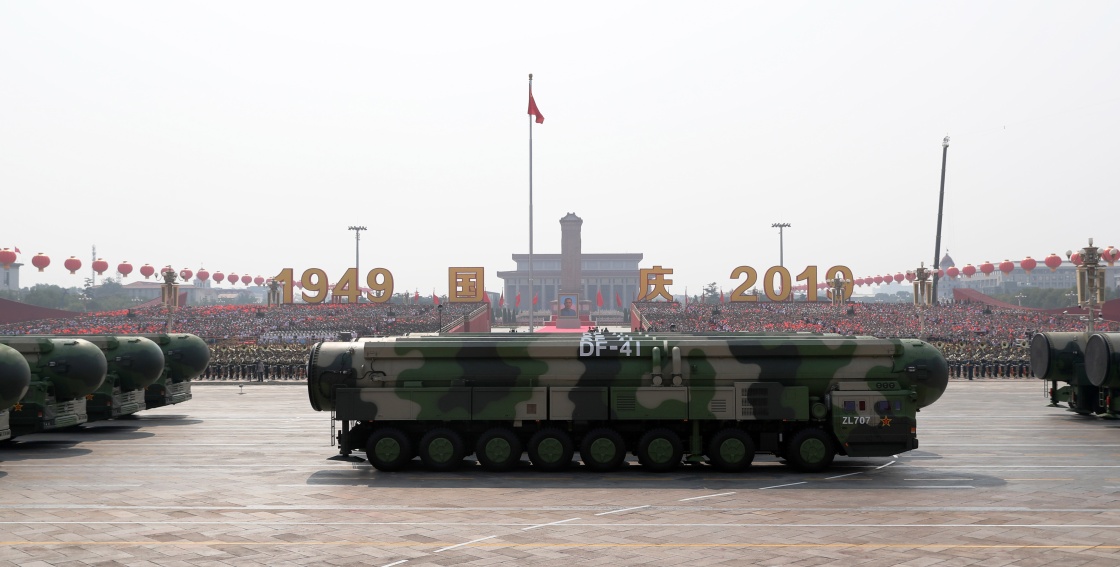 2019年10月1日上午,慶祝中華人民共和國(guó)成立70周年大會(huì)在北京天安門廣場(chǎng)隆重舉行。這是東風(fēng)-41核導(dǎo)彈方隊(duì)通過(guò)天安門廣場(chǎng)。新華社記者 袁滿 攝