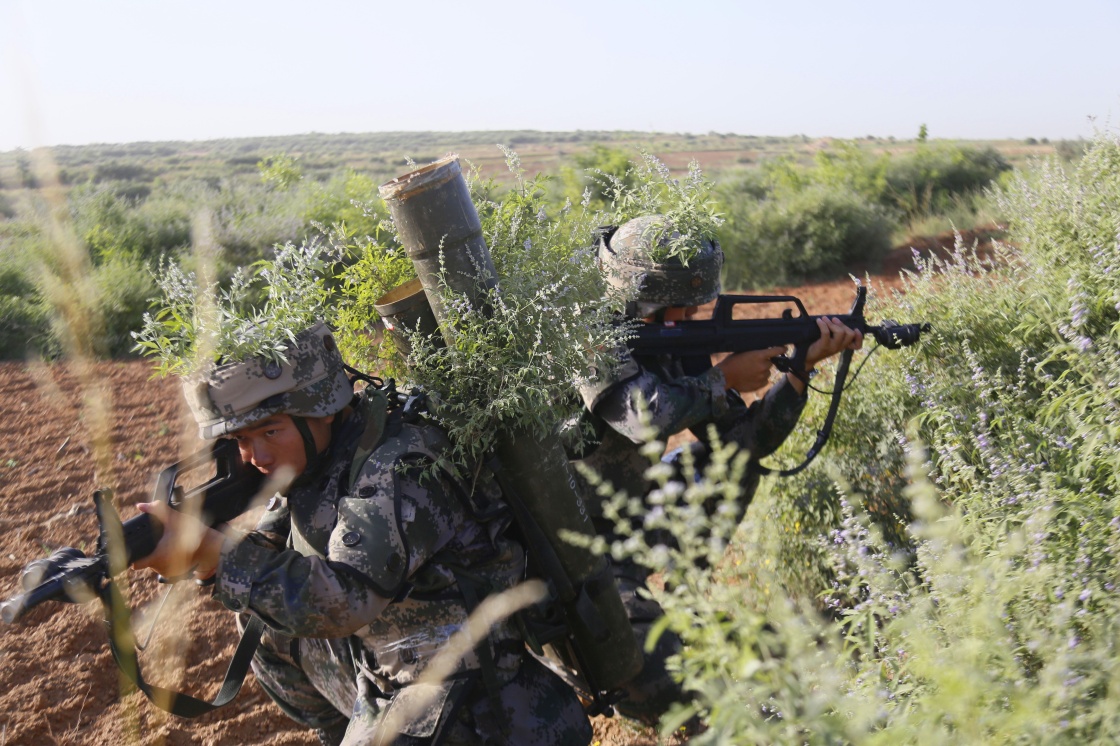 陸軍步兵學(xué)院在太行腹地開展“淬火·2018”合成營(yíng)綜合戰(zhàn)術(shù)演練。這是步兵班實(shí)施交替掩護(hù)前進(jìn)(2018年6月6日攝)。新華社發(fā)(黃春霖 攝)