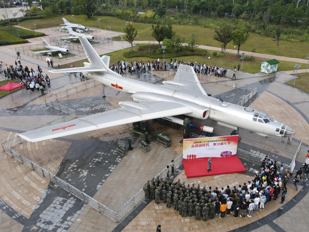 500余名高校學(xué)子在江西省南昌市軍事主題公園,了解國(guó)防和軍隊(duì)建設(shè)發(fā)展成就(2020年9月19日攝,無(wú)人機(jī)照片)。新華社發(fā)(郭冬明 攝)