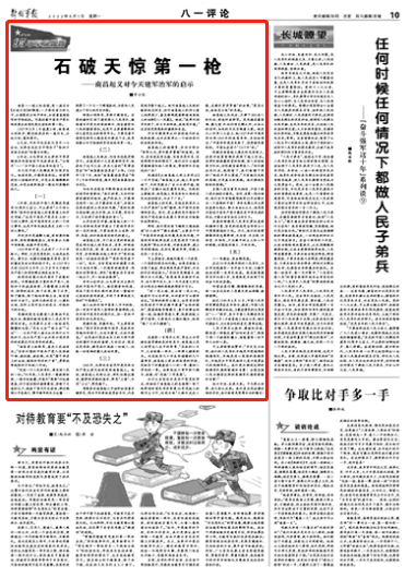 5年前,在慶祝中國人民解放軍建軍90周年大會上,習主席用“三個偉大事件”來評價南昌起義的重要意義和歷史貢獻:“這是中國共產(chǎn)黨歷史上的一個偉大事件,是中國革命史上的一個偉大事件,也是中華民族發(fā)展史上的一個偉大事件。”