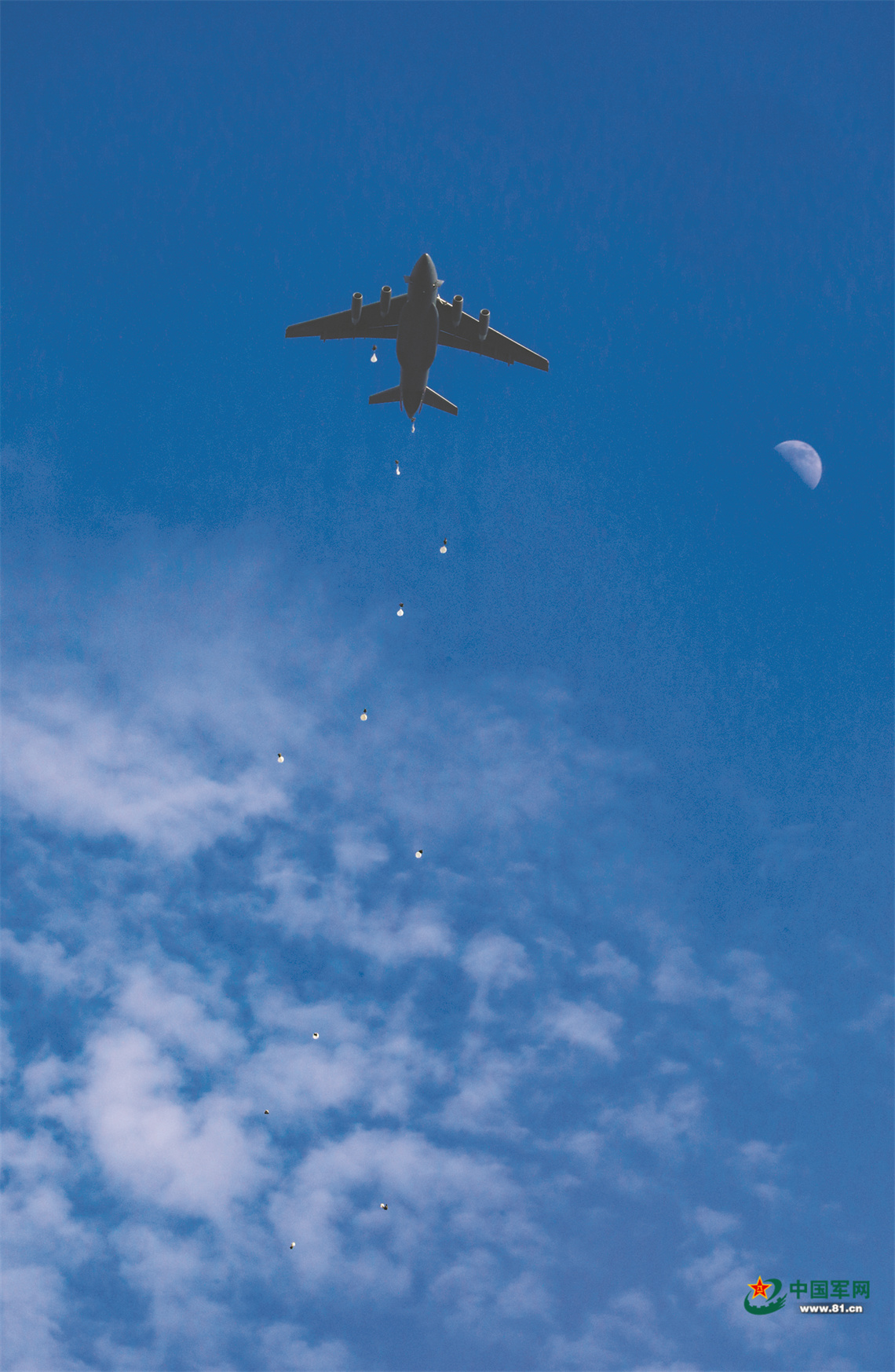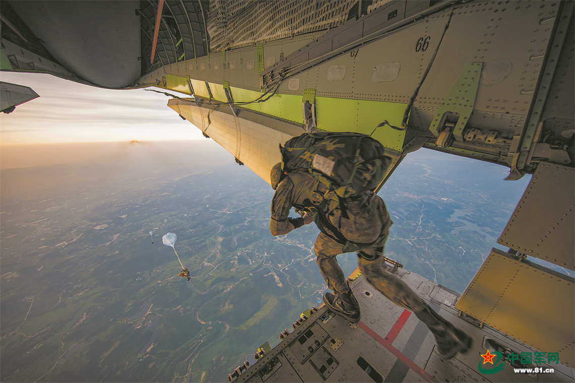 抵達(dá)預(yù)定空域后,特戰(zhàn)隊(duì)員勇敢躍出機(jī)艙。