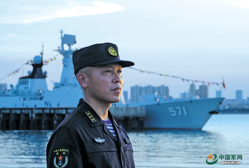 這位眼神堅(jiān)毅、動(dòng)作干練的上校軍官,是海軍運(yùn)城艦政委李維。