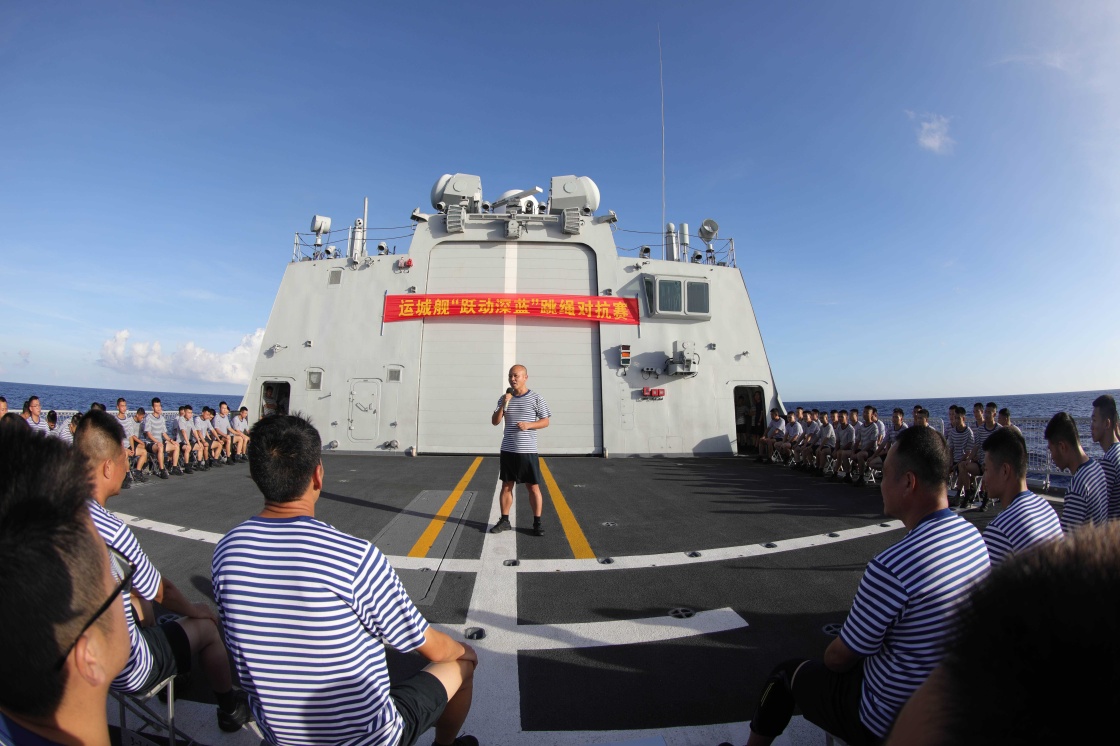 闖過一次次風浪,穿越一道道海峽,駛過一片片海域,運城艦一年執(zhí)行任務(wù)300多天,官兵始終精神飽滿、斗志昂揚。