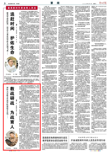 自學(xué)院調(diào)整組建以來,在平志偉和戰(zhàn)友精心施教下,一批批能參善謀的聯(lián)合參謀軍官從這里走出,在戰(zhàn)區(qū)聯(lián)合指揮崗位上發(fā)揮重要作用。盡管在教學(xué)和研究等領(lǐng)域都取得了出色成績,但在平志偉看來,“未來還有許多需要突破的隘口,為戰(zhàn)育人的腳步一刻也不能停下。”