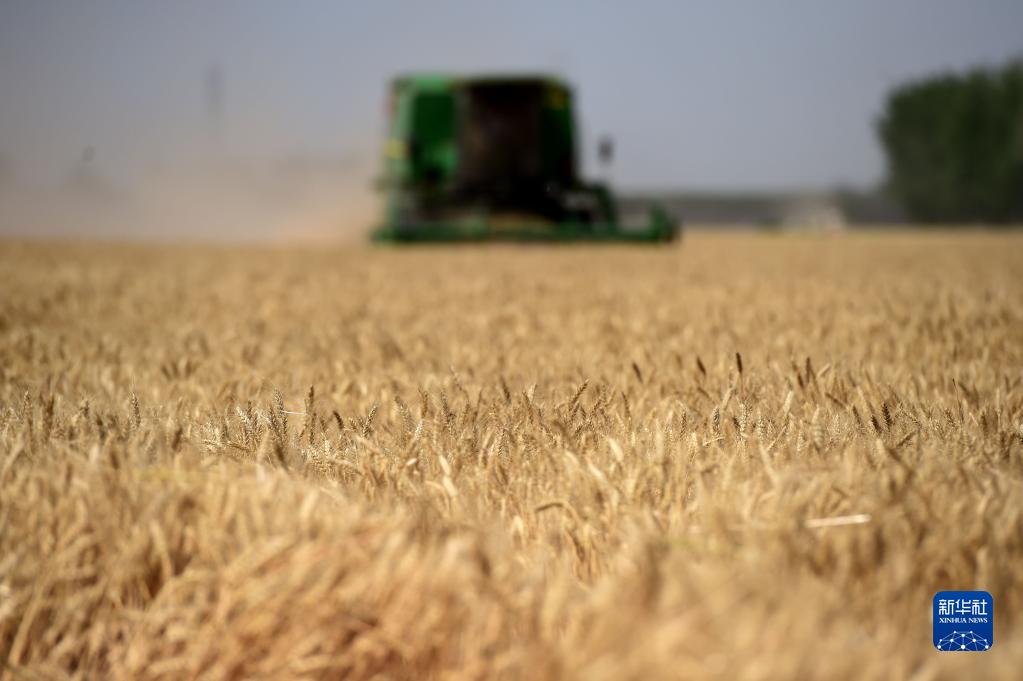 安徽省農(nóng)墾集團龍亢農(nóng)場良種繁育基地,工作人員駕駛收割機收割小麥(2021年6月7日攝)新華社記者 黃博涵 攝