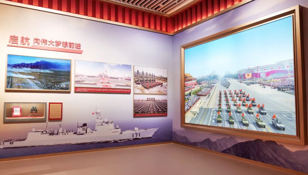 設(shè)置“黨在新時(shí)代的強(qiáng)軍目標(biāo)”、“重整行裝再出發(fā)”、“礪劍鑄盾 奔向一流”、“大好河山 寸土不讓”、“愛我人民愛我軍”、“深情勵(lì)三軍 奮進(jìn)新征程”等重點(diǎn)展項(xiàng)。