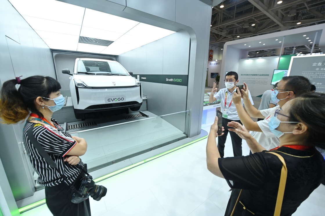在福建廈門舉行的第二十二屆中國國際投資貿(mào)易洽談會(huì)的寧德時(shí)代展位,來訪者參觀新能源汽車換電過程(2022年9月8日攝)。新華社記者 林善傳 攝