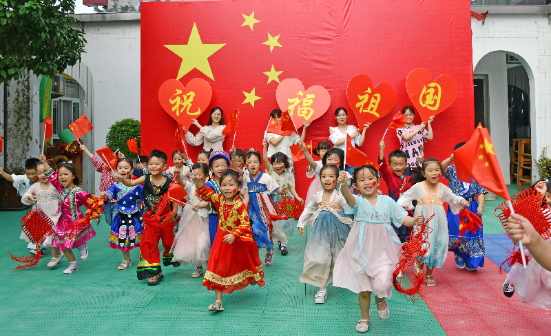 9月27日,浙江省臺州市仙居縣迎暉幼兒園開展“祝福祖國喜迎國慶”主題教育活動。通過開展“我與國旗合個影”、歌唱祖國、向祖國問好等形式,表達對偉大祖國的無限熱愛之情,祝福偉大的祖國繁榮昌盛。通訊員 王華斌