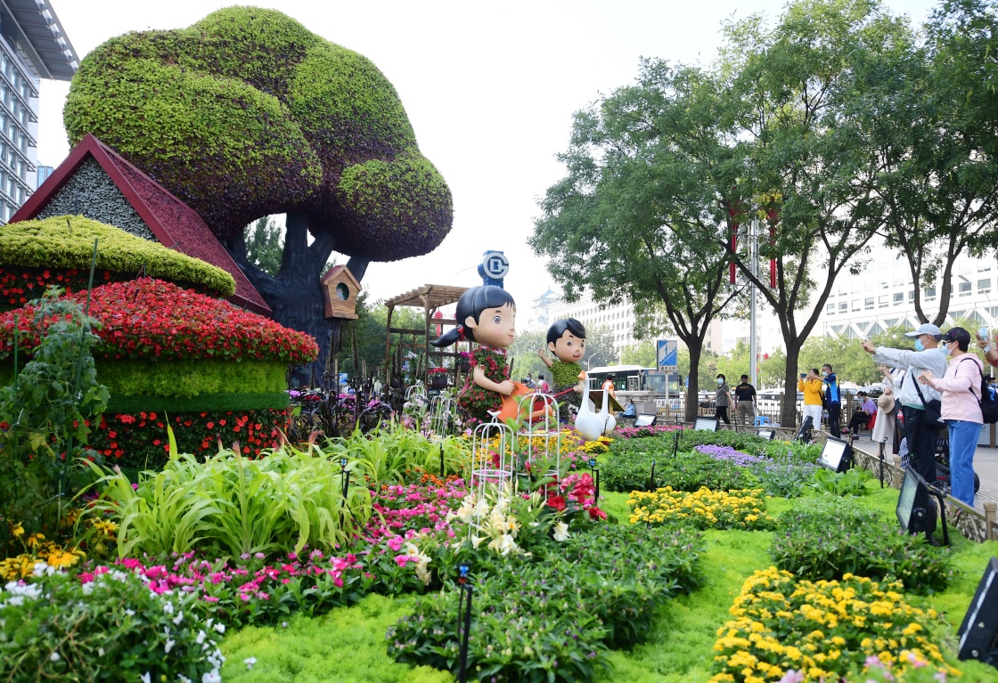 9月27日在西單拍攝的“綠色生活”花壇。新華社記者 張晨霖 攝