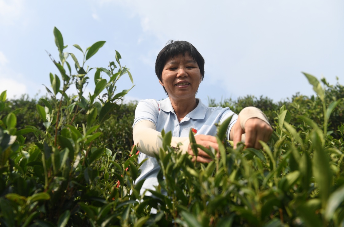 祝雪蘭在廣西蒼梧縣六堡鎮(zhèn)山坪村采茶(2022年9月22日攝)。新華社記者 陸波岸 攝