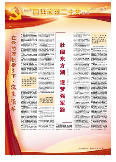 我國首艘彈射型國產(chǎn)航母福建艦下水,空軍與國內(nèi)一流大學(xué)“戰(zhàn)略聯(lián)姻”的雙學(xué)籍飛行學(xué)員成為藍(lán)天新銳……在喜迎黨的二十大勝利召開之際,改革強(qiáng)軍的時代脈動蘊(yùn)含在這一個個“高光時刻”。